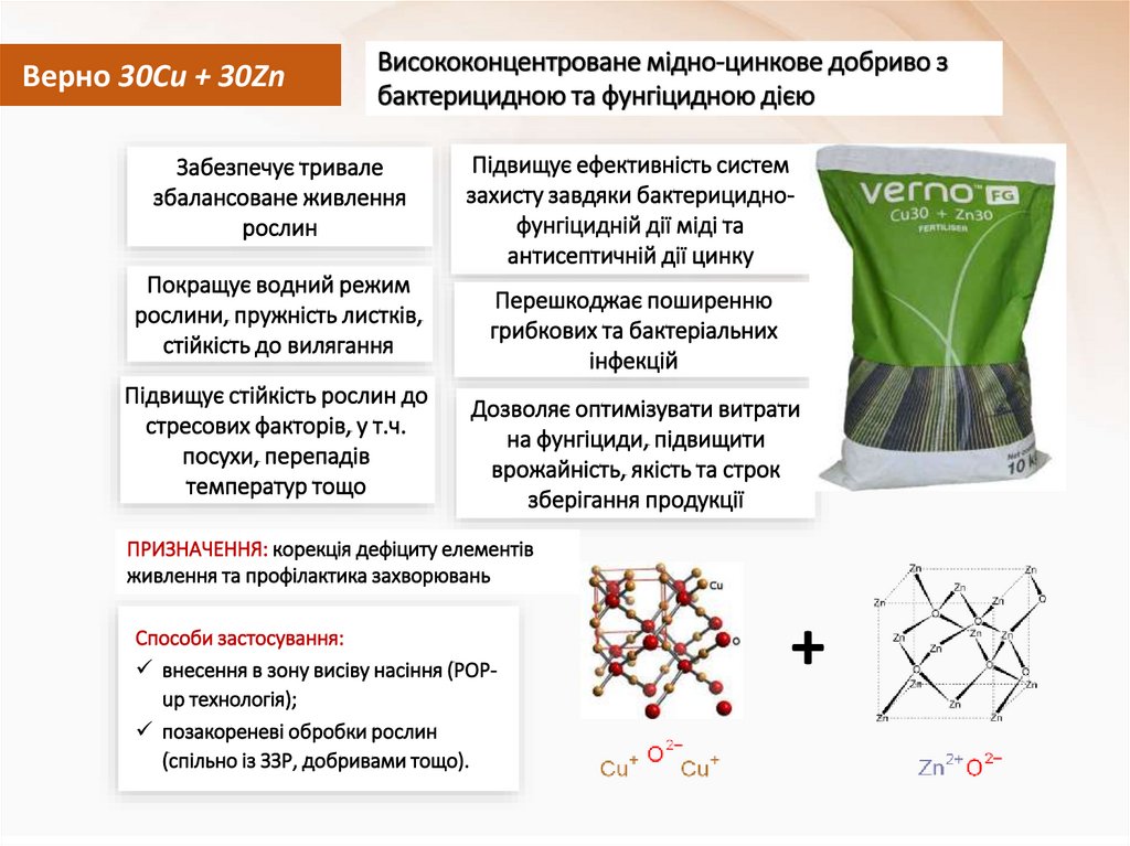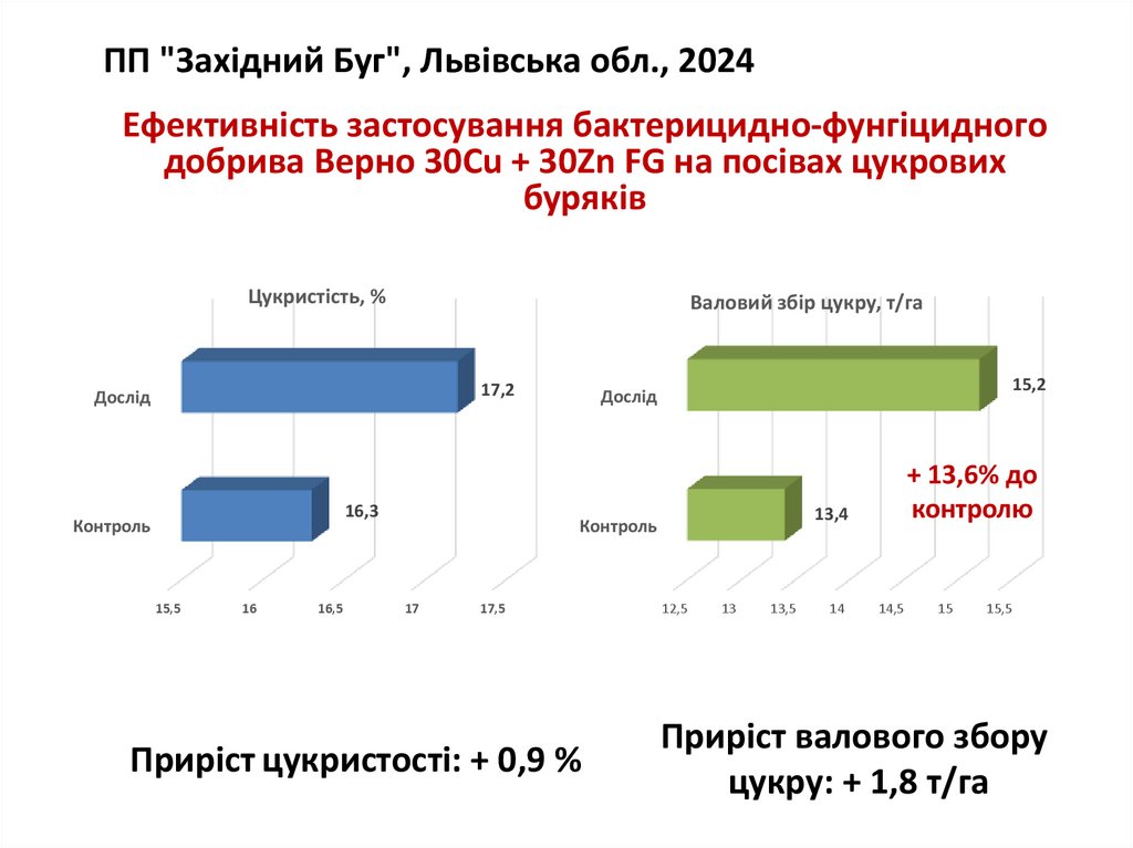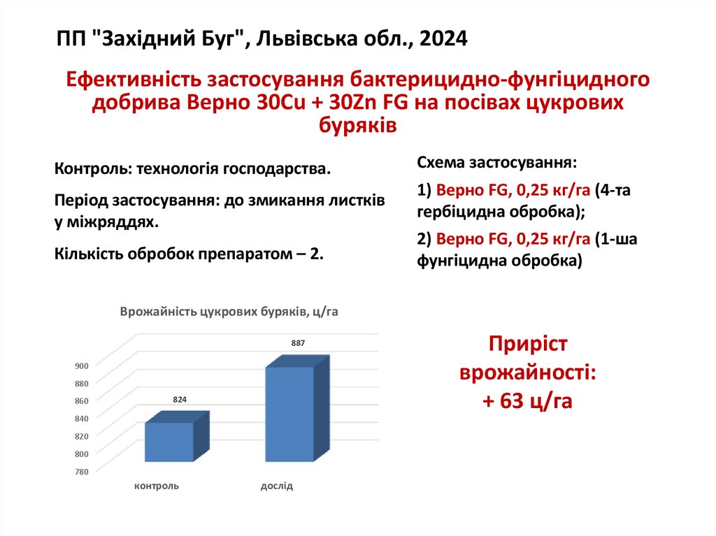 добрива Верно 30Cu + 30Zn FG на посівах цукрових