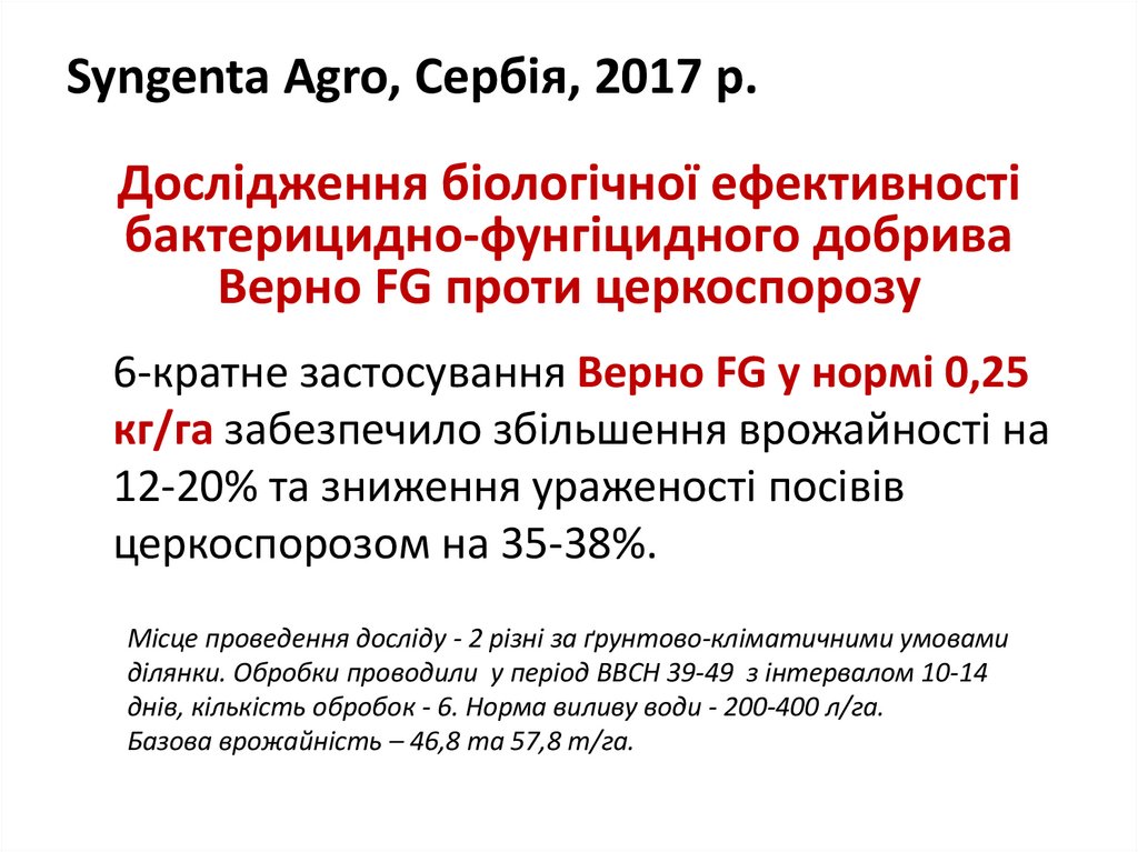 Syngenta Agro, Сербія, 2017 р.Дослідження біологічної ефективності