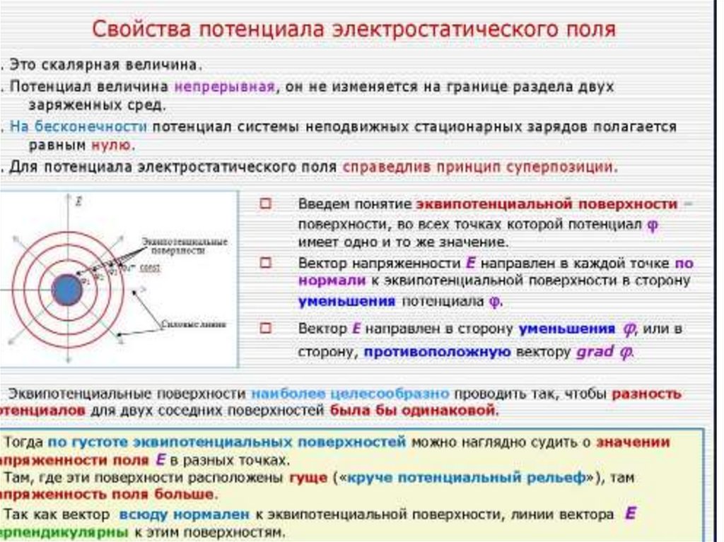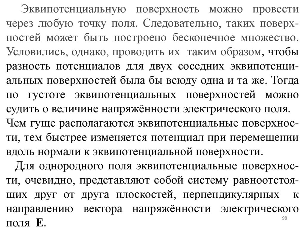 разность потенциалов для двух соседних эквипотенциальных поверхностей была бы всюду одна и та же. Тогда