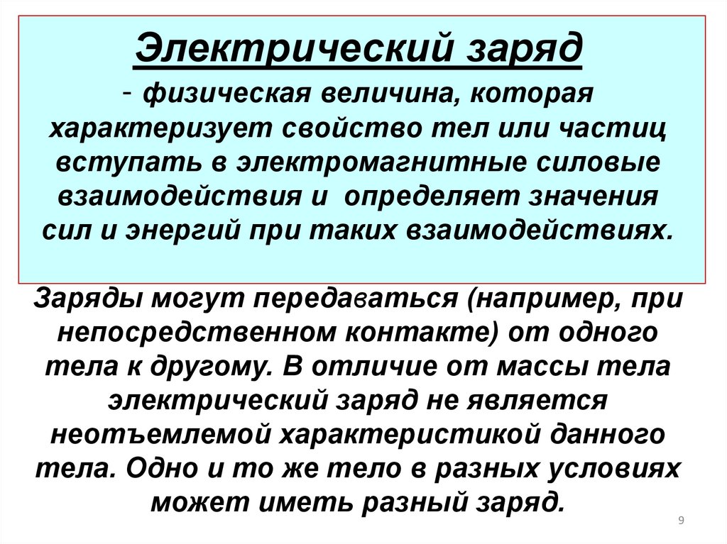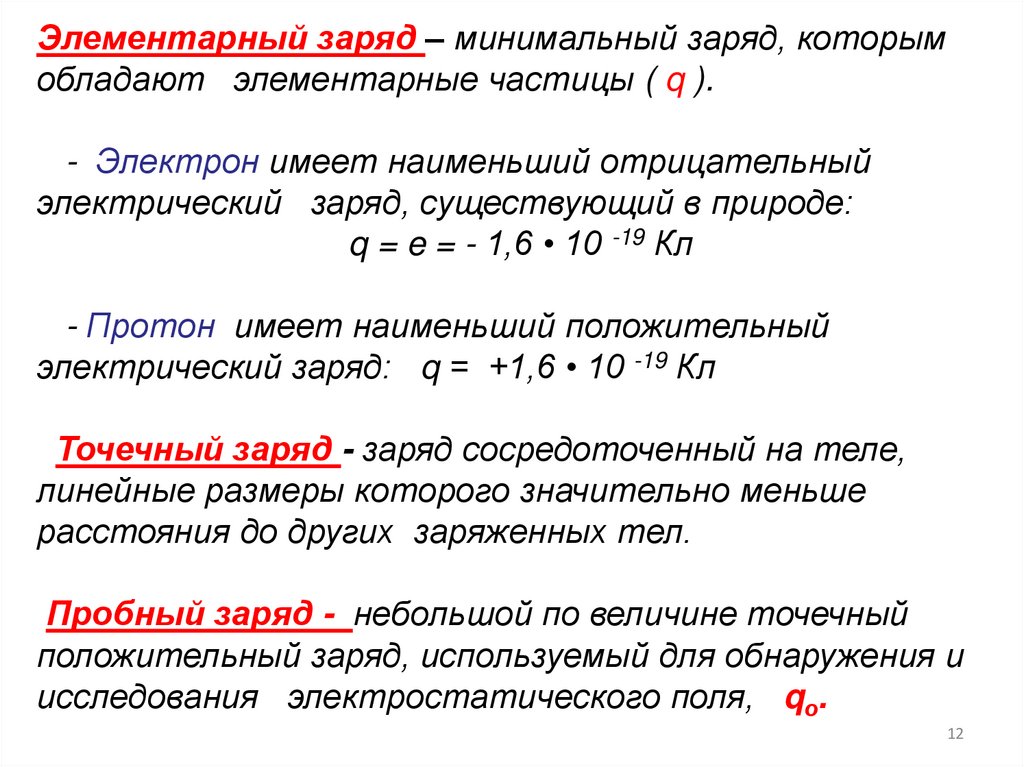 Элементарный заряд – минимальный заряд, которымобладают элементарные частицы ( q ).