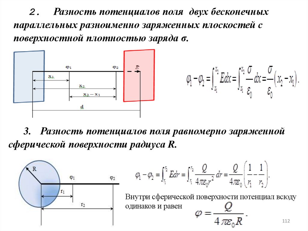 -- разность потенциалов – это работа электростатических сил по перемещению единичного положительного заряда из одной точки в другую