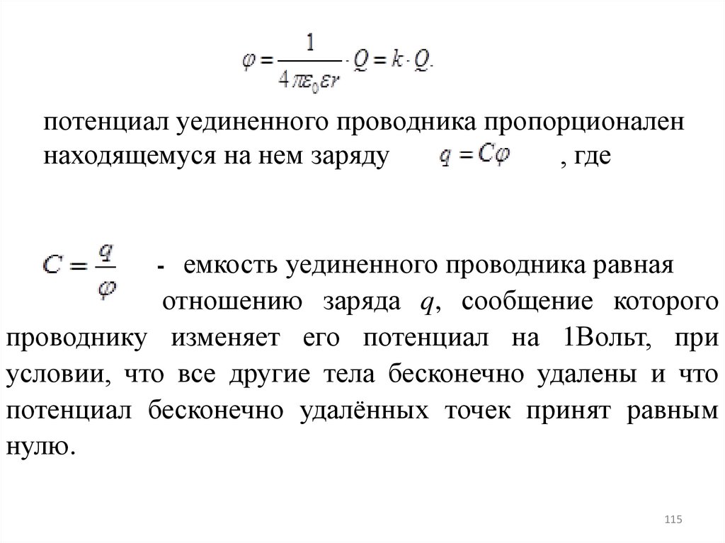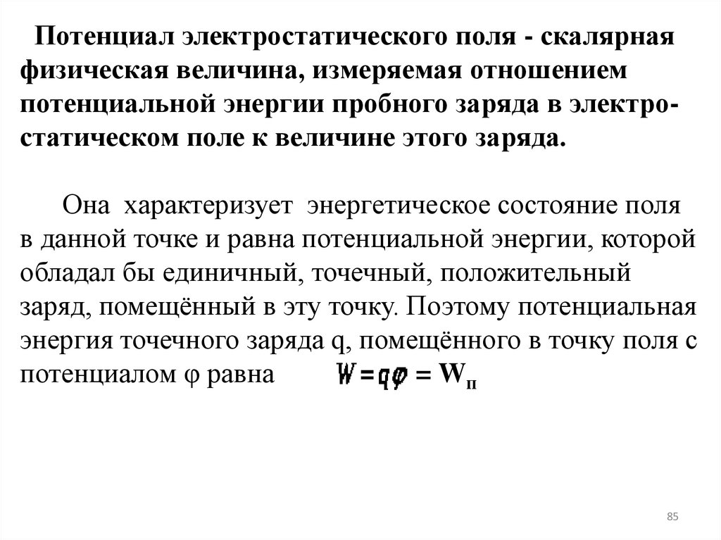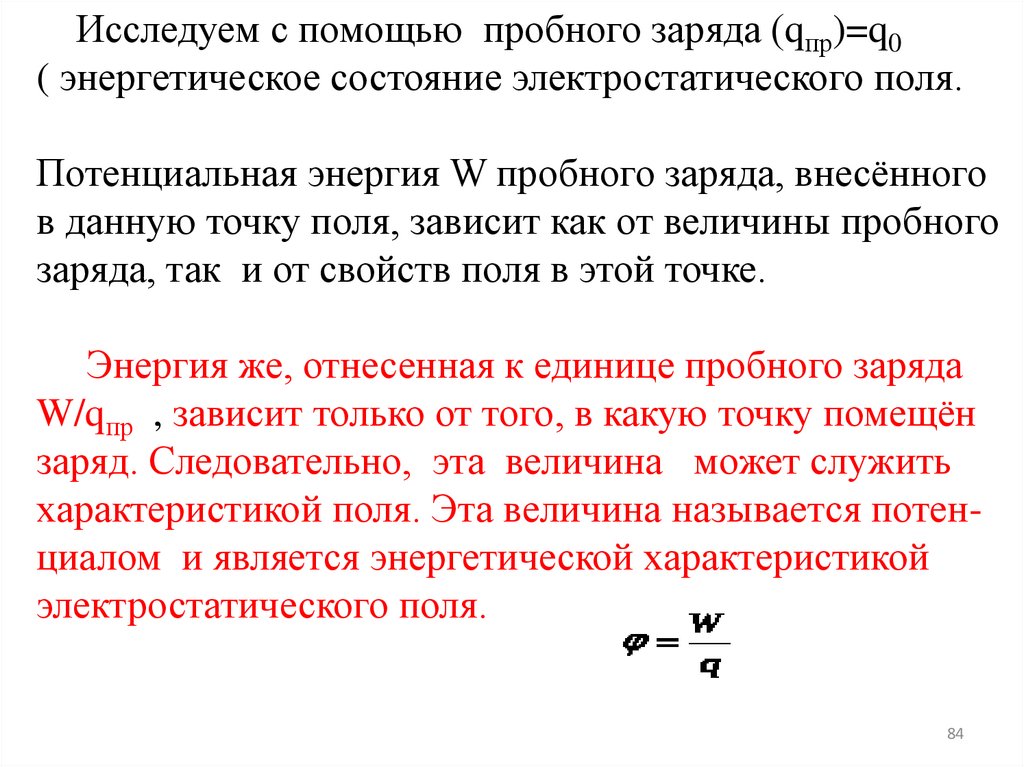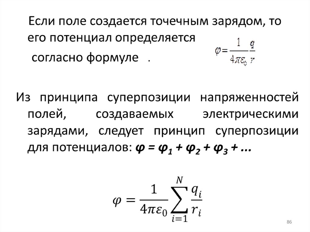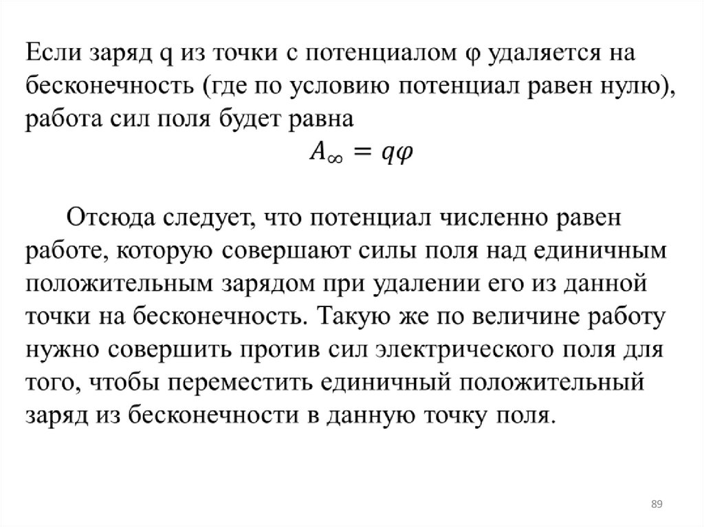 Потенциал φ поля точечного заряда q нарасстоянии r от него относительно бесконечно