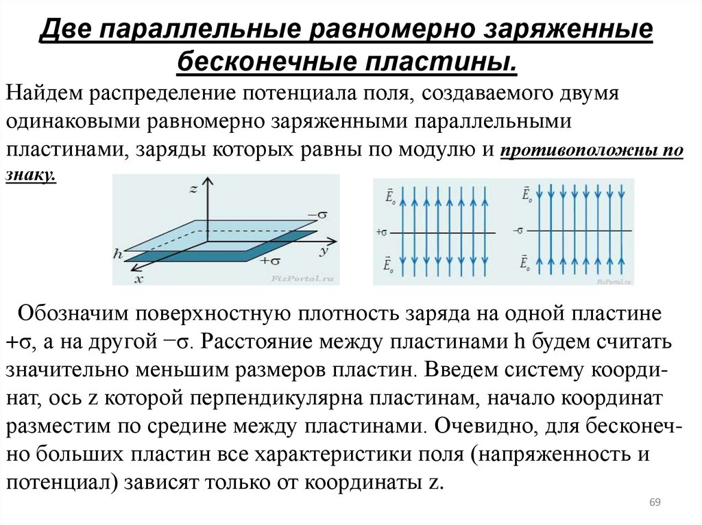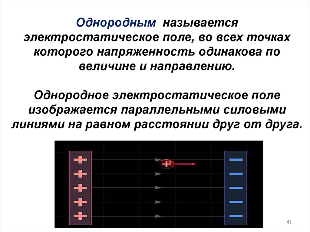 Для однородного поля эквипотенциальные поверхности, очевидно, представляют собой систему равноотстоящих друг от друга плоскостей, перпендикулярных к