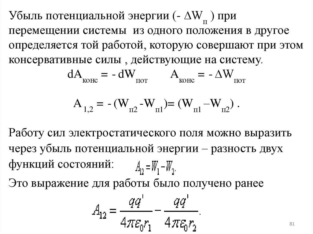 A12 = Wп1 – Wп2 = qφ1 – qφ2 = q(φ1 – φ2).