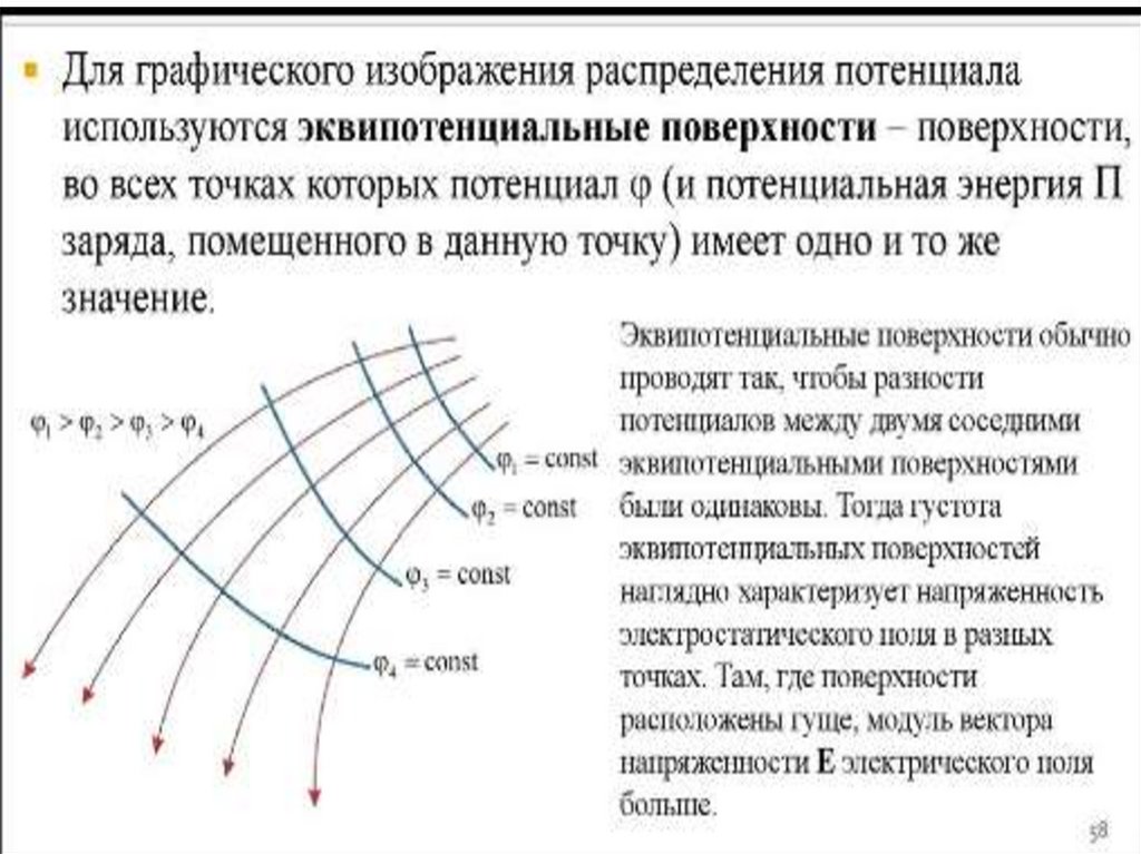 Эквипотенциальную поверхность можно провестичерез любую точку поля. Следовательно, таких поверхностей может быть построено бесконечное множество.