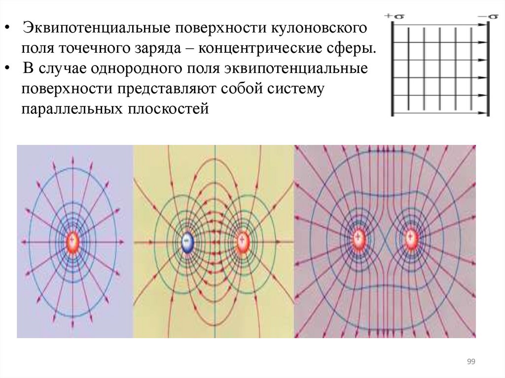 • Эквипотенциальные поверхности кулоновскогополя точечного заряда – концентрические сферы.