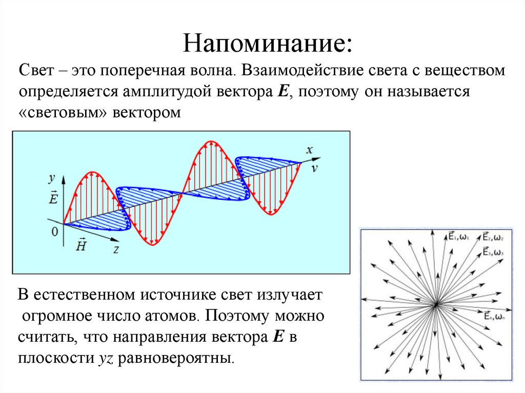 Напоминание:Свет – это поперечная волна. Взаимодействие света с веществом