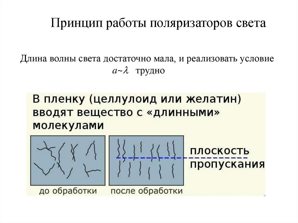 Принцип работы поляризаторов светаДлина волны света достаточно мала, и реализовать условие