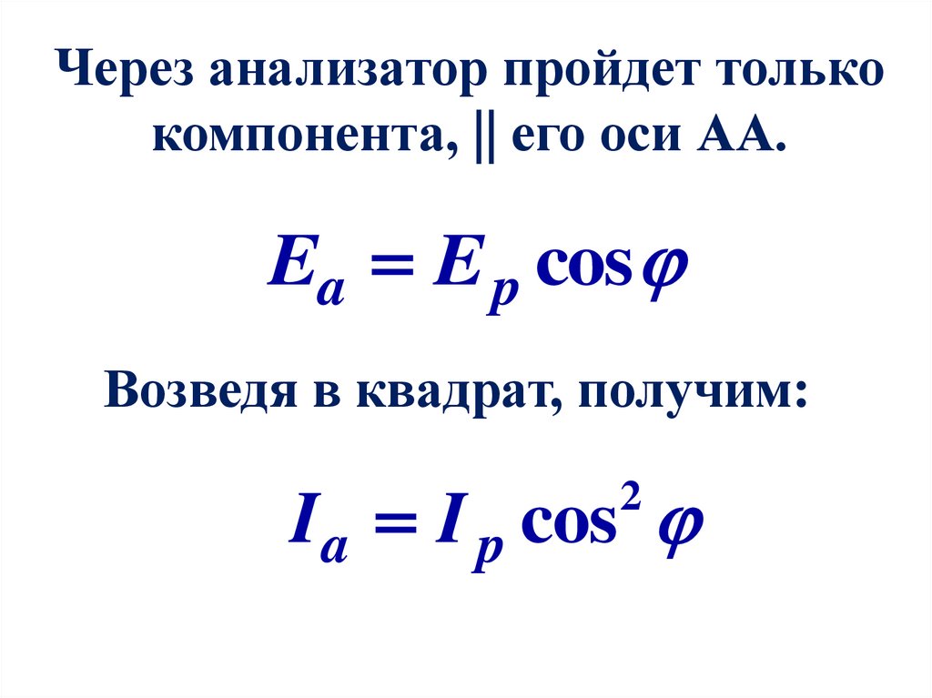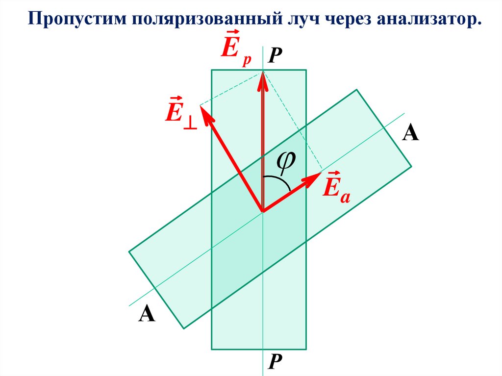 Через анализатор пройдет толькокомпонента, || его оси АА.