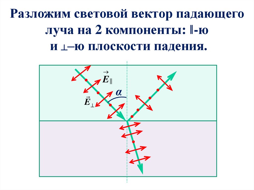 Разложим световой вектор падающеголуча на 2 компоненты: ‖-ю
