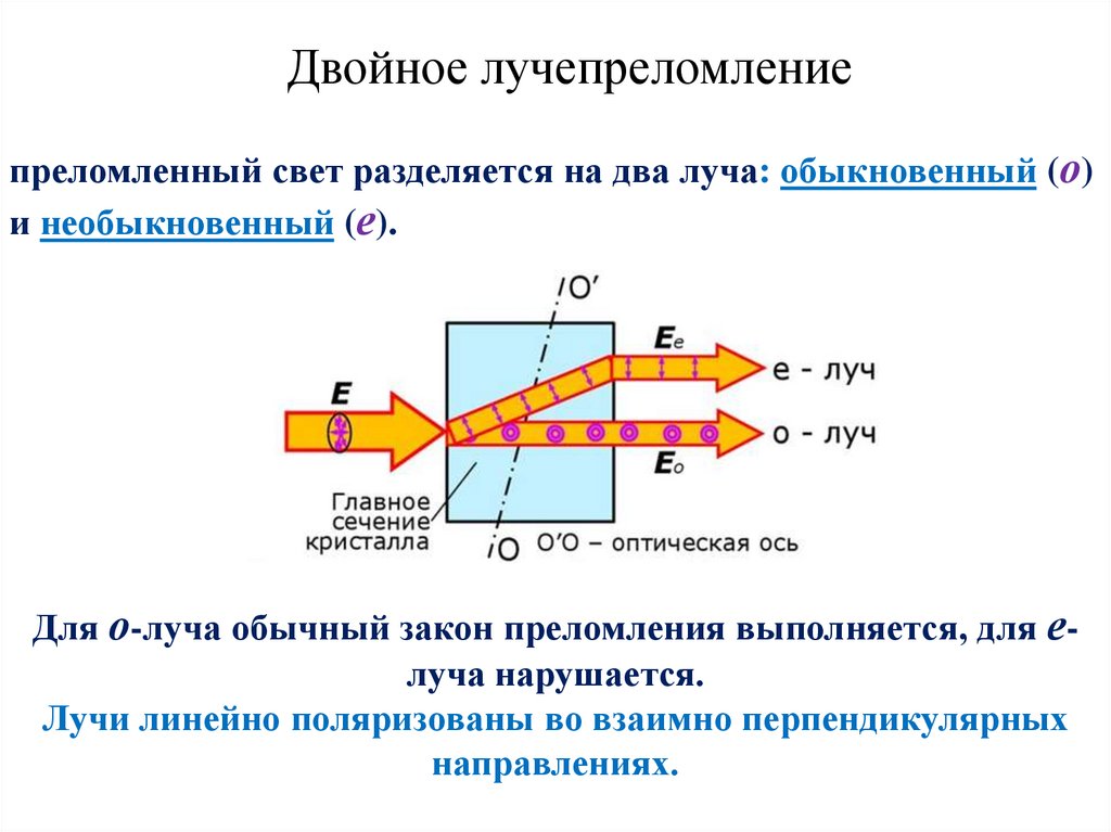 Двойное лучепреломлениепреломленный свет разделяется на два луча: обыкновенный (о)