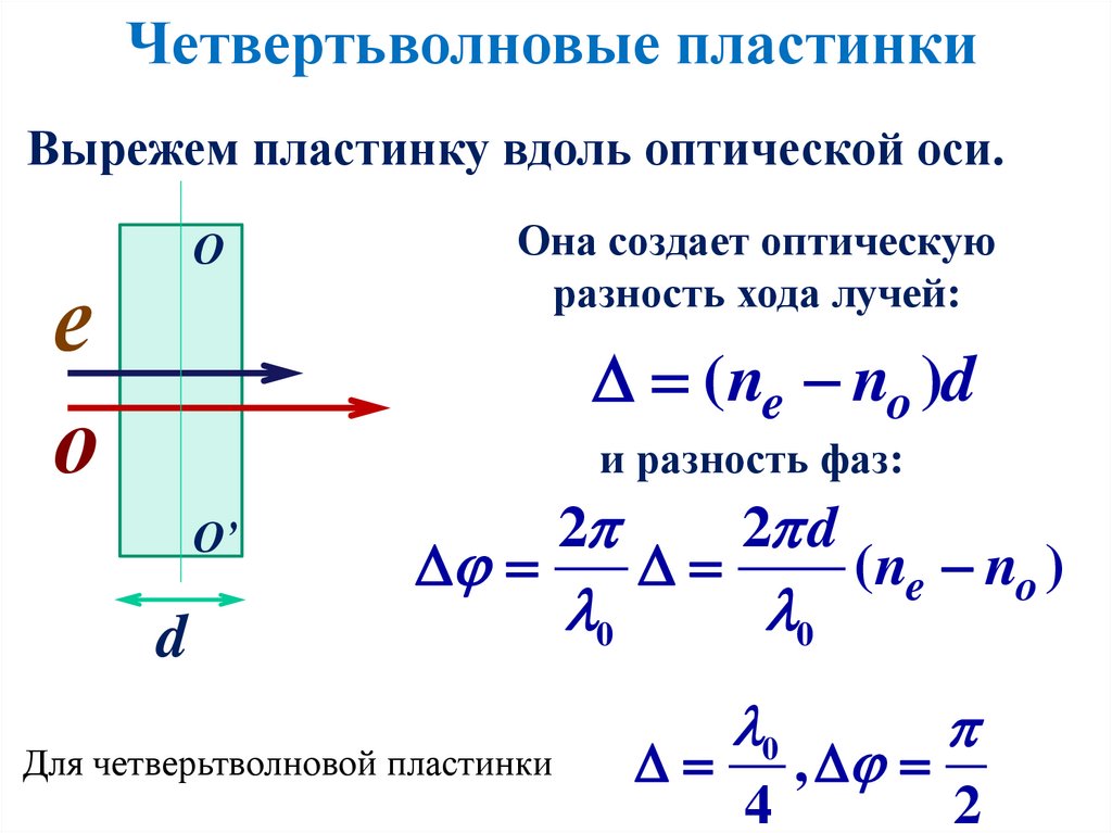 Четвертьволновые пластинкиВырежем пластинку вдоль оптической оси.