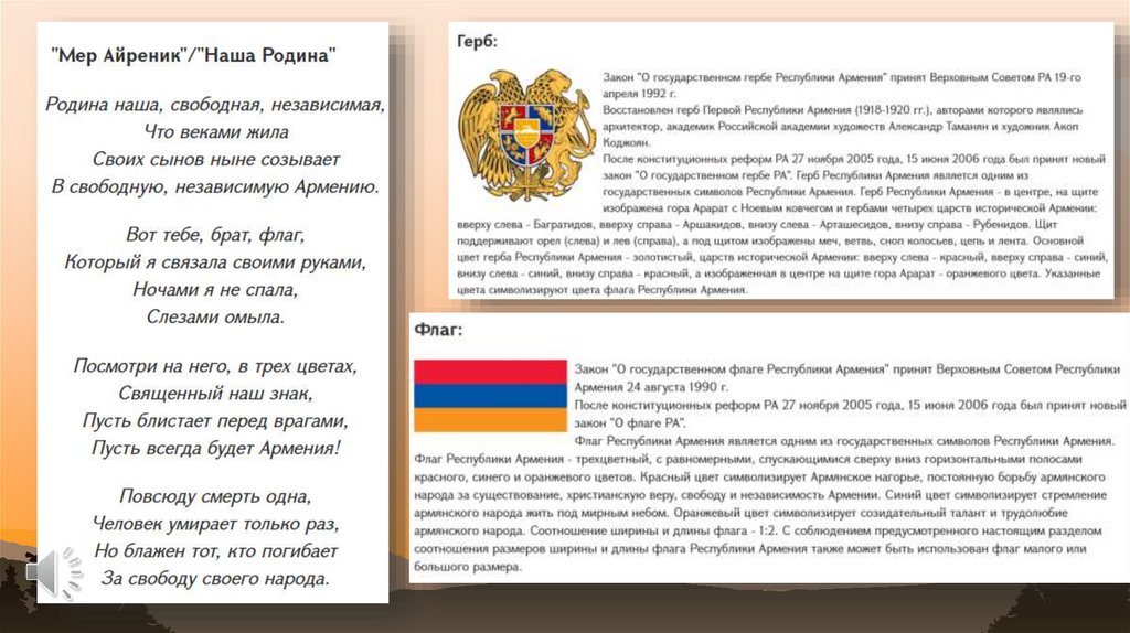 Статья 1 Конституции РАРеспублика Армения – суверенное,