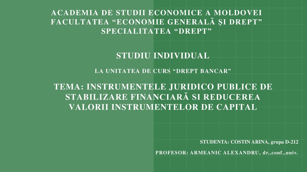 1. Academia de Studii Economice a Moldovei Facultatea “Economie Generală şi Drept” Specialitatea “DREPT”
