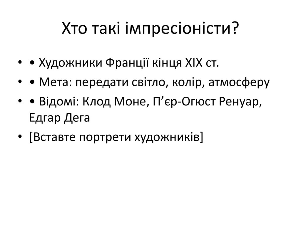 Хто такі імпресіоністи?• • Художники Франції кінця XIX ст.