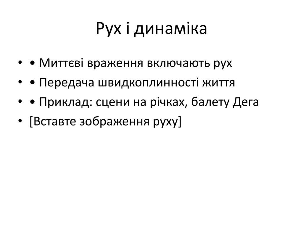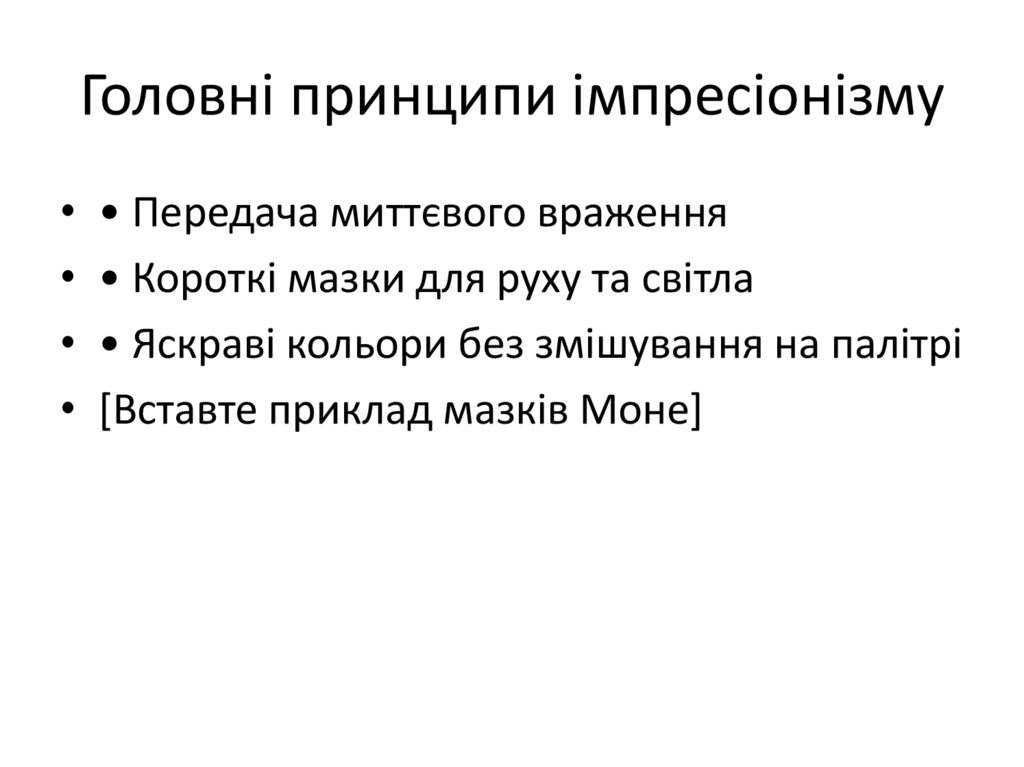 Головні принципи імпресіонізму• • Передача миттєвого враження