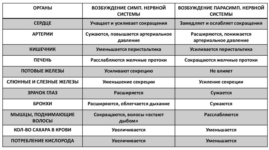 ОРГАНЫВОЗБУЖДЕНИЕ СИМП. НЕРВНОЙ