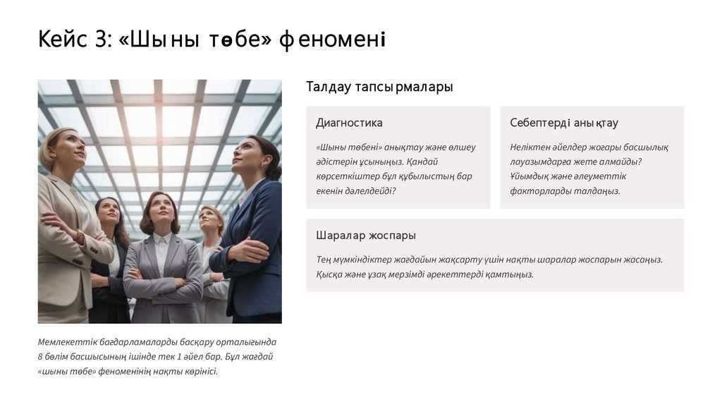 Қазақстандағы әйел көшбасшылығының қазіргі жағдайын талдау. Статистикалық деректер