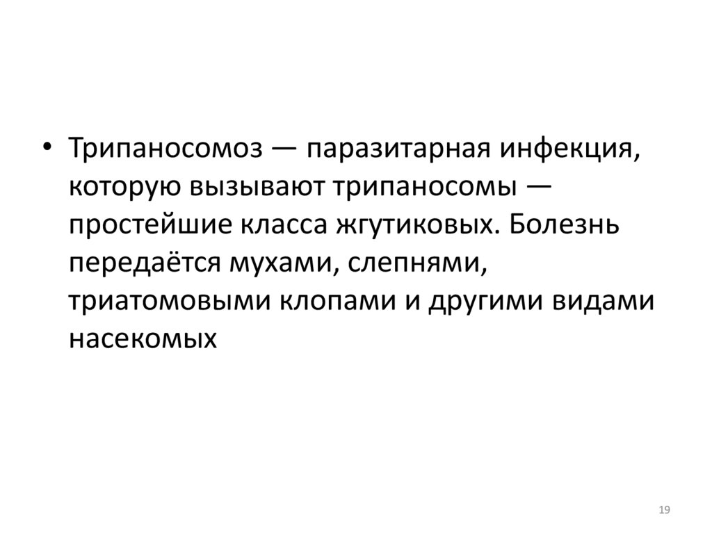 • Трипаносомоз — паразитарная инфекция,которую вызывают трипаносомы —