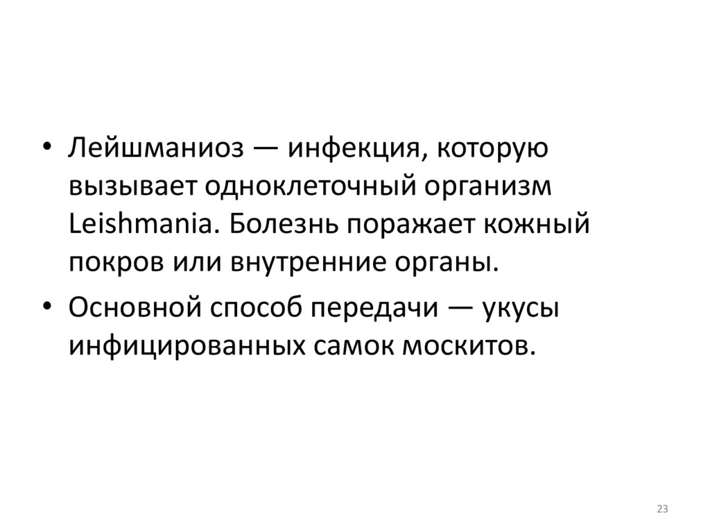 • Лейшманиоз — инфекция, которуювызывает одноклеточный организм