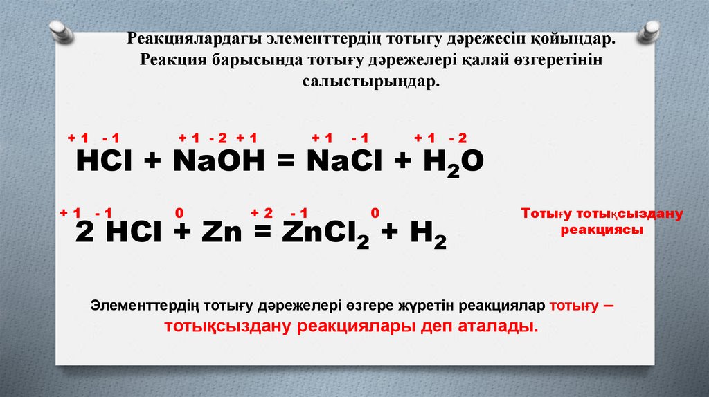 Реакциялардағы элементтердің тотығу дәрежесін қойыңдар.Реакция барысында тотығу дәрежелері қалай өзгеретінін