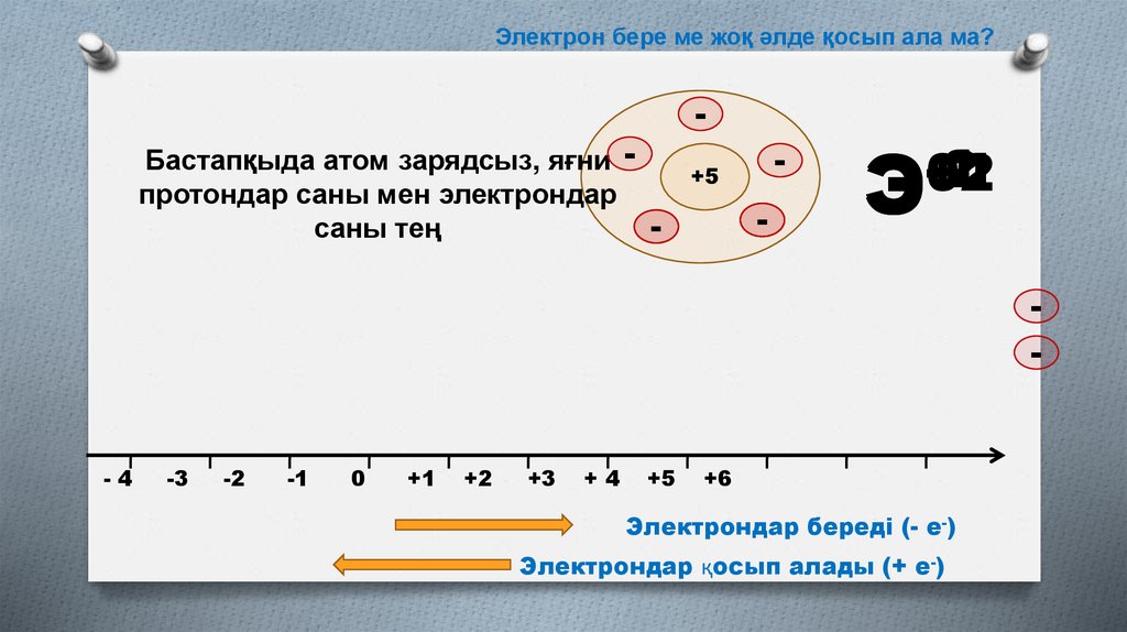 Электрон бере ме жоқ әлде қосып ала ма?Бастапқыда атом зарядсыз, яғни протондар саны мен электрондар