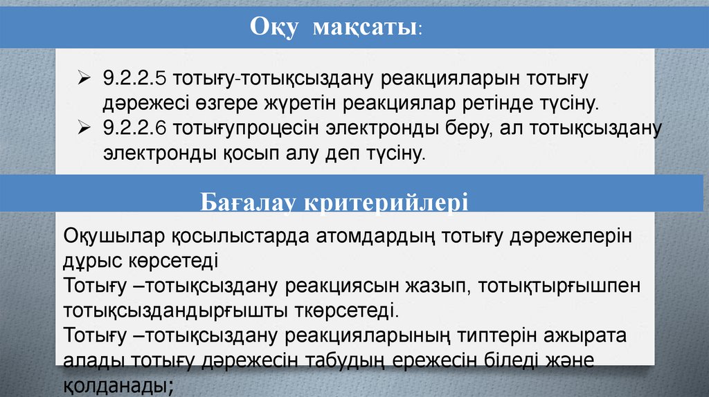 Оқу мақсаты:9.2.2.5 тотығу-тотықсыздану реакцияларын тотығу