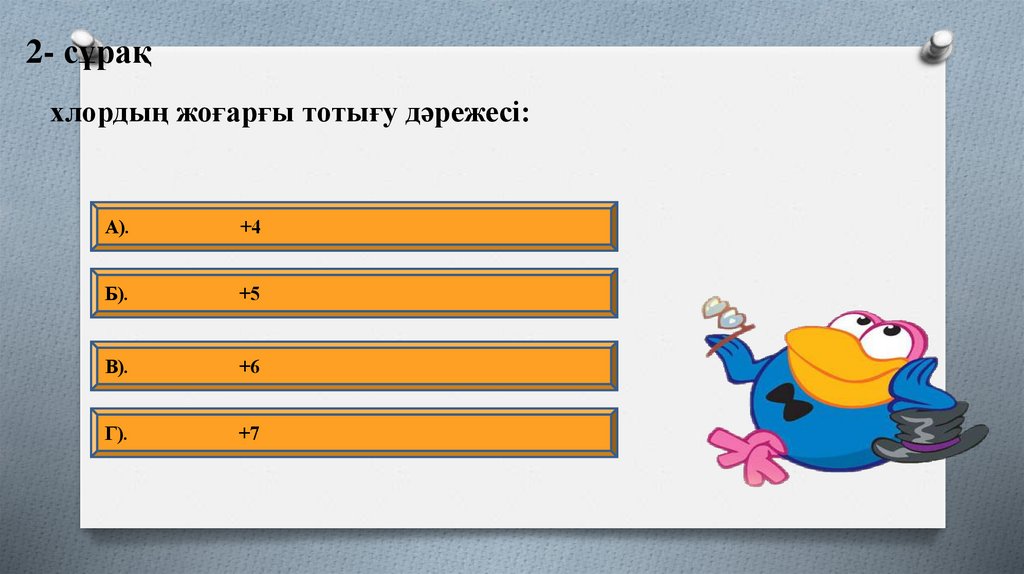 2- сұрақхлордың жоғарғы тотығу дәрежесі: