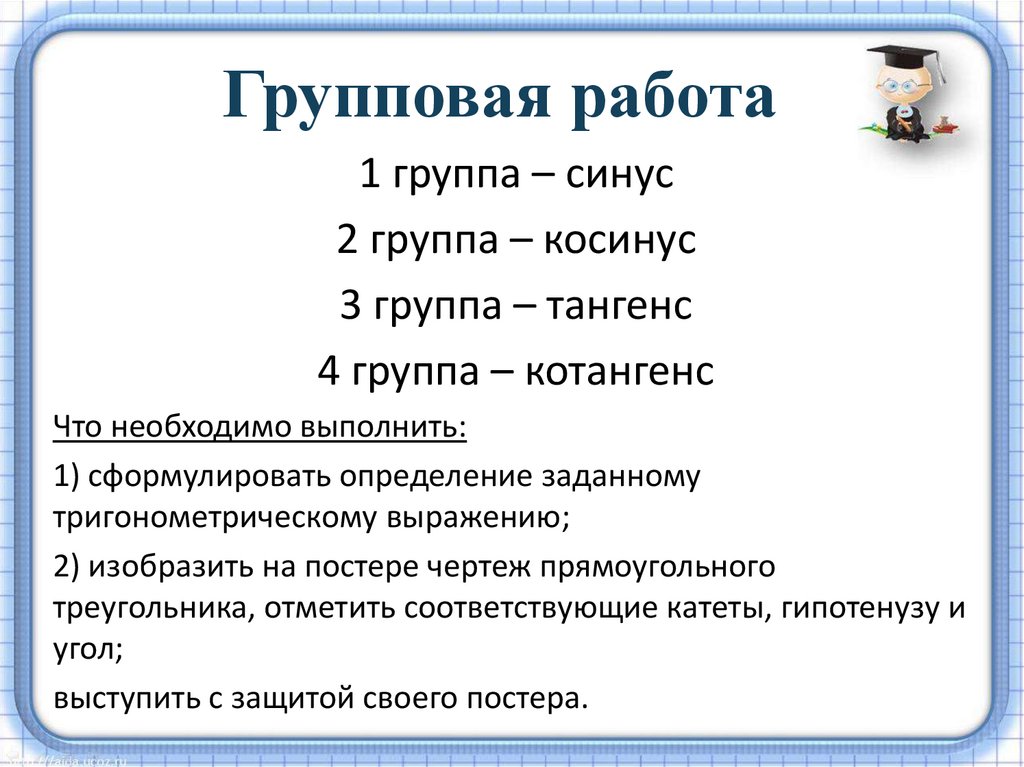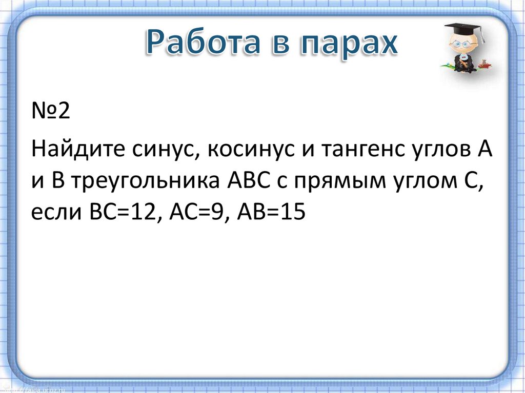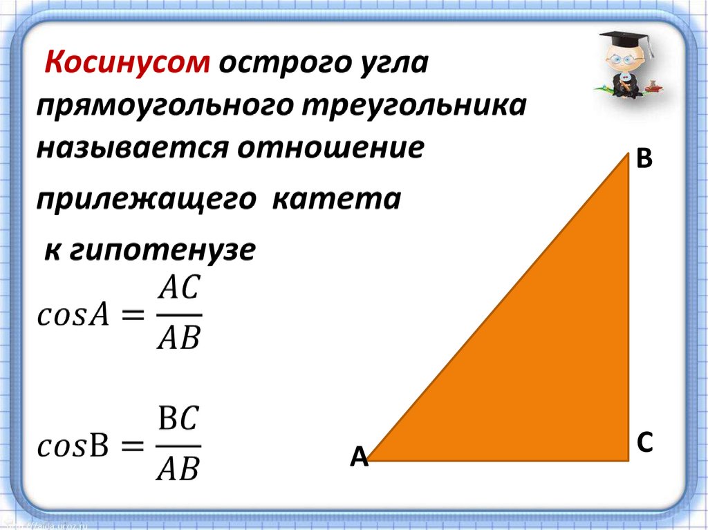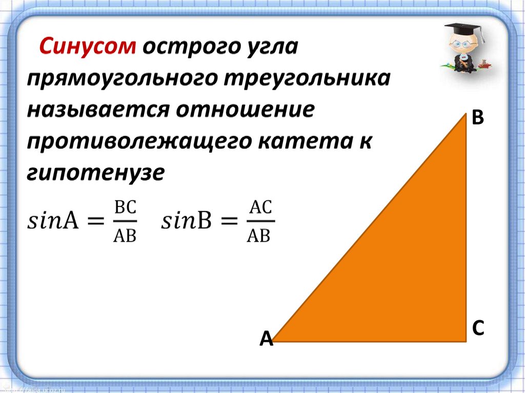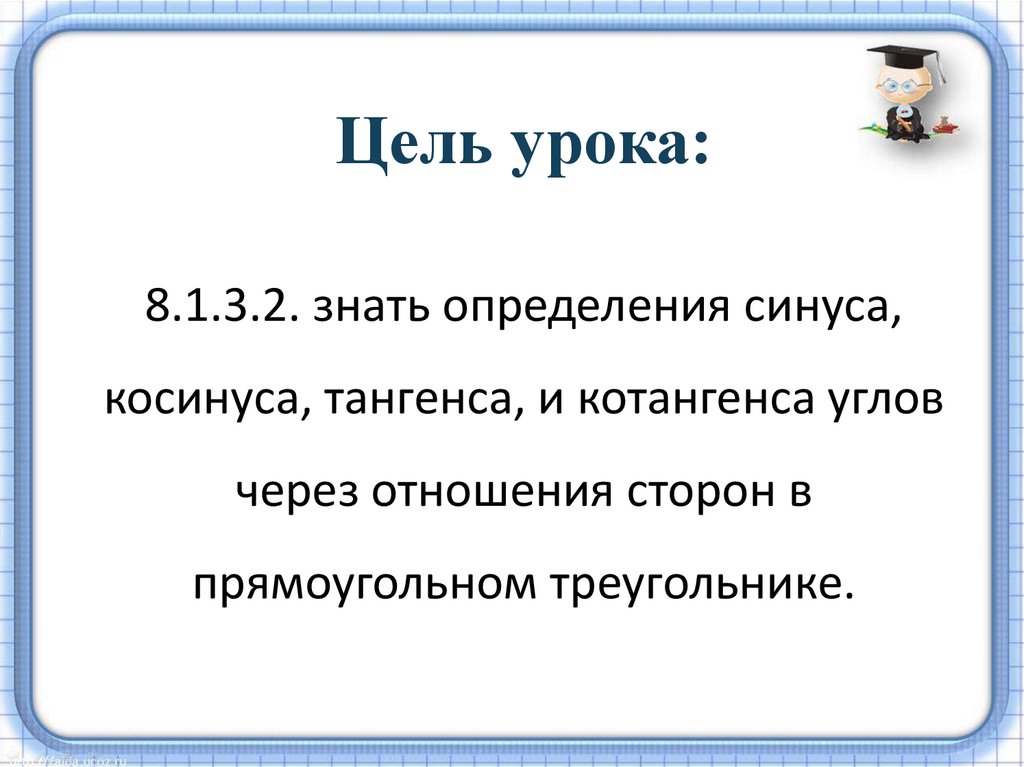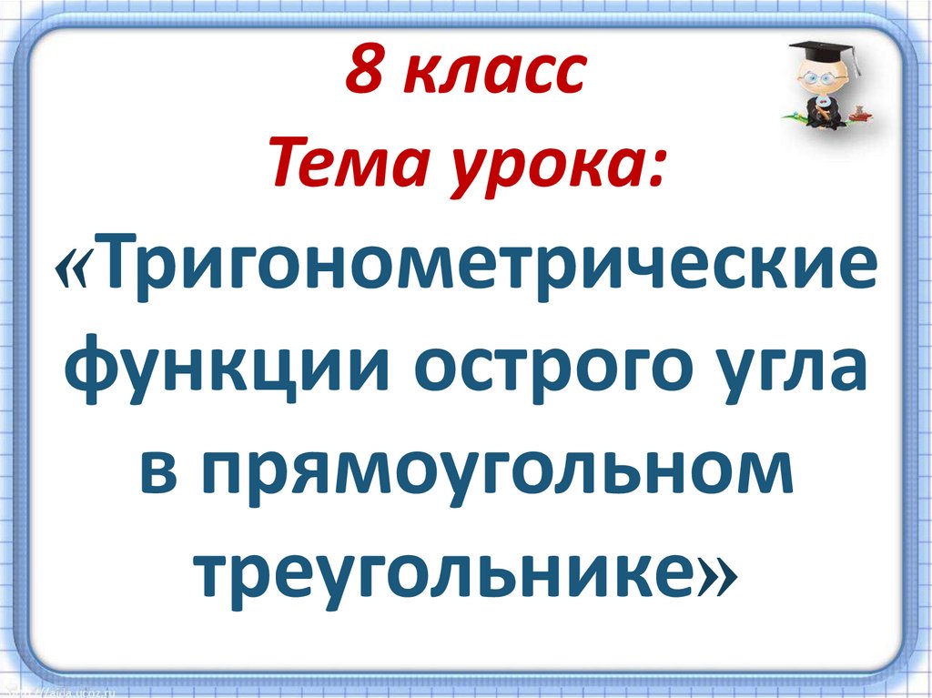 1. 8 класс Тема урока: «Тригонометрические функции острого угла в прямоугольном треугольнике»