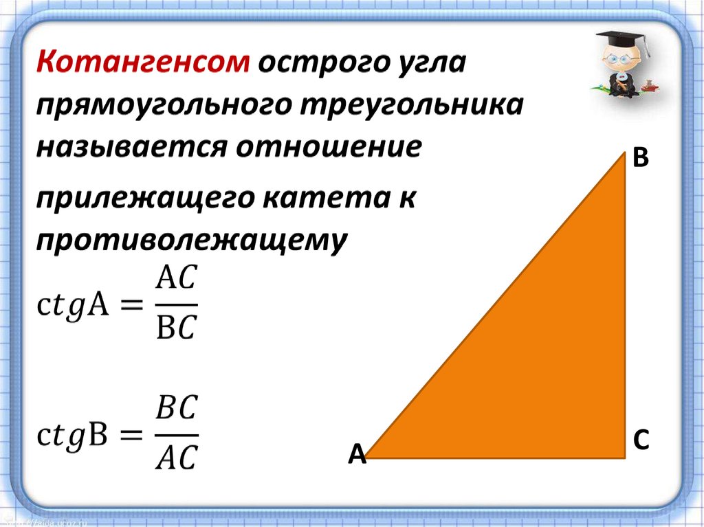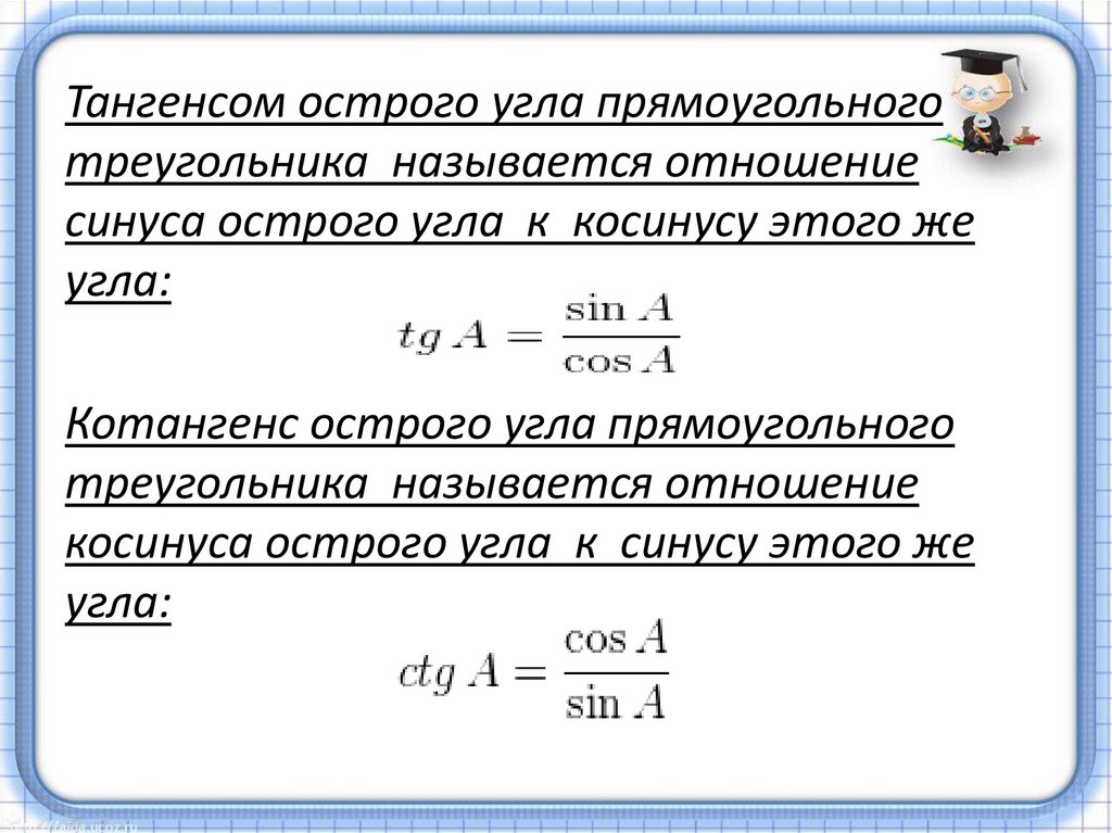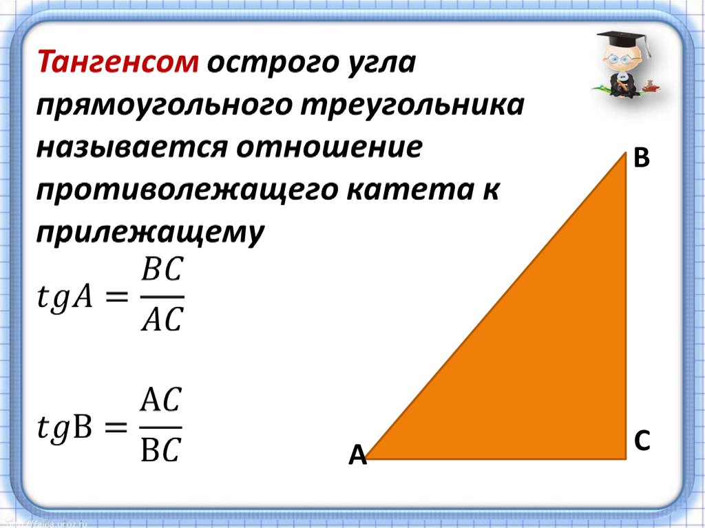Тангенсом острого угла прямоугольноготреугольника называется отношение