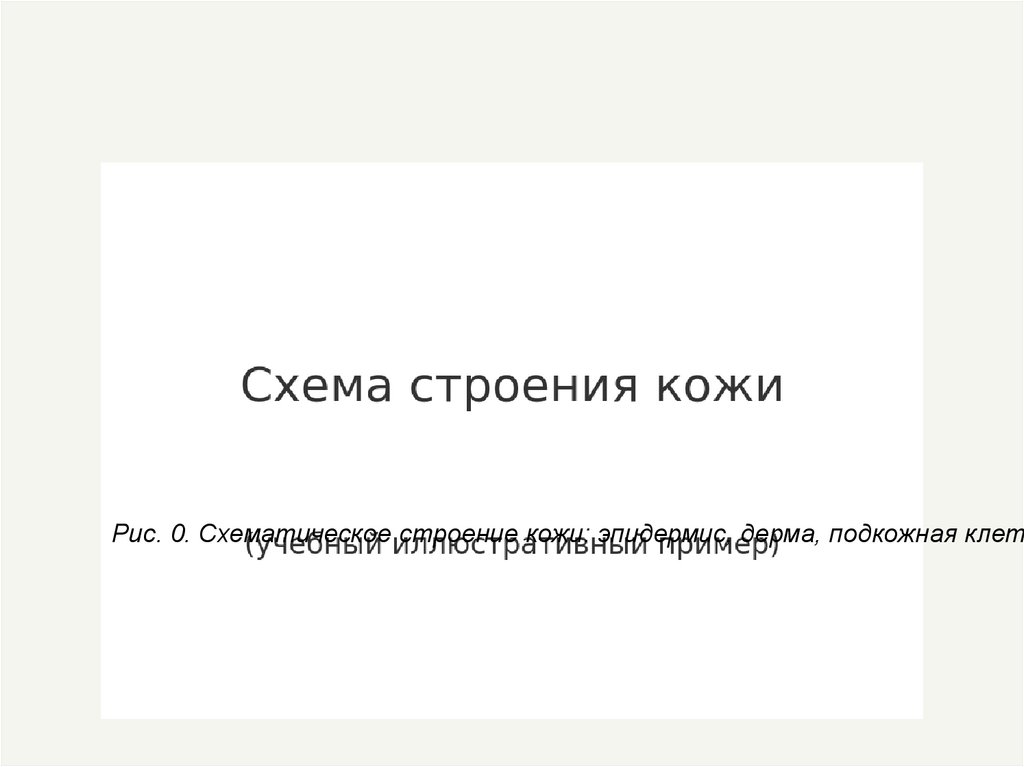 Схема строения кожиРис. 0. Схематическое строение кожи: эпидермис, дерма, подкожная клет