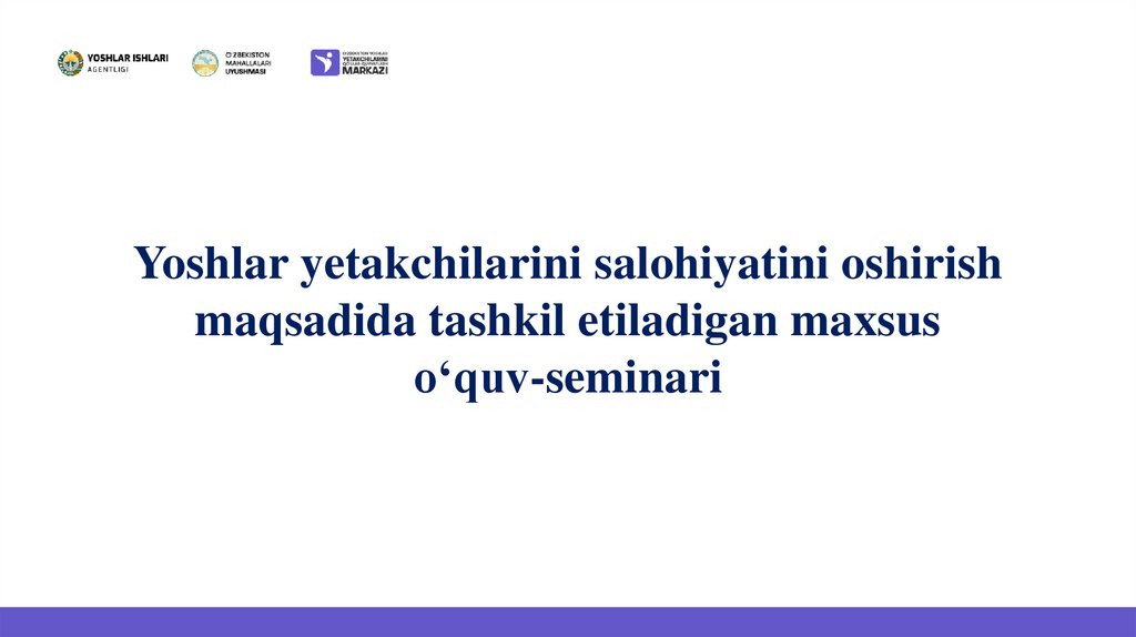 Yoshlar yetakchilarini salohiyatini oshirishmaqsadida tashkil etiladigan maxsus