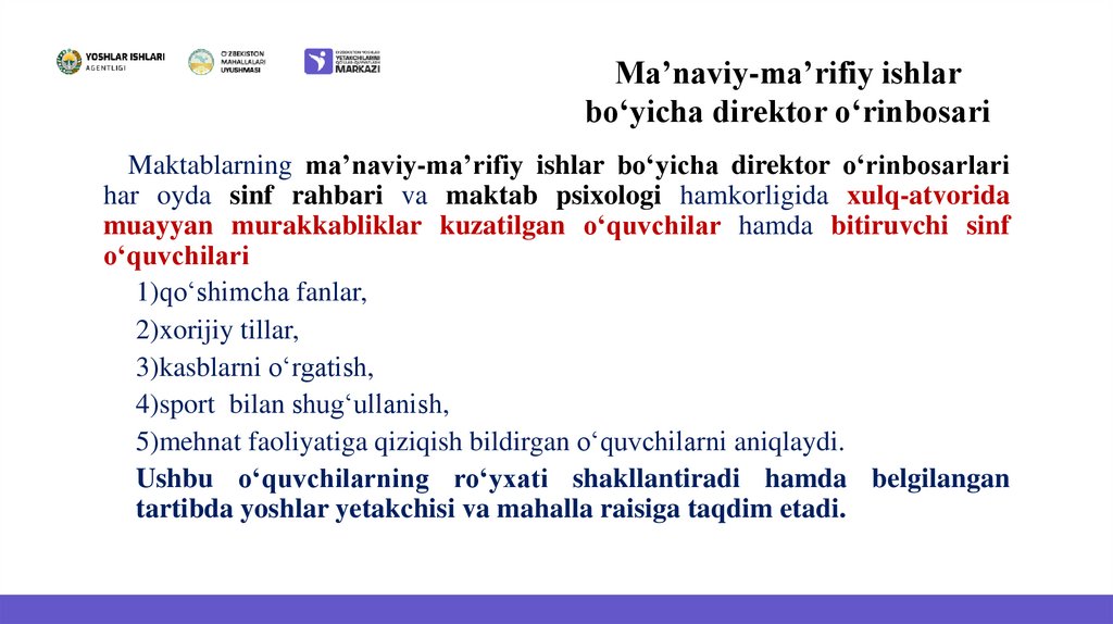 Ma’naviy-ma’rifiy ishlarbo‘yicha direktor o‘rinbosari
