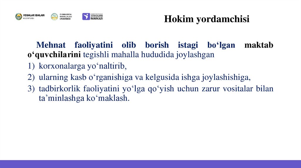21. III. Yoshlar bandligini ta’minlash yoʻnalishida