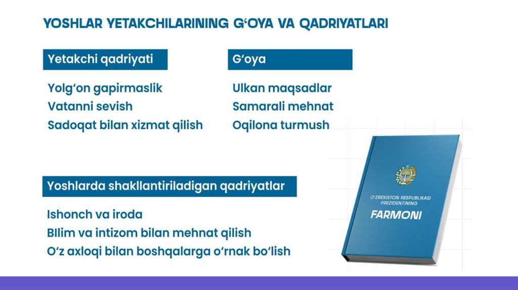 !Farmonda nazarda tutilgan yoshlar yetakchisining asosiy vazifalarga