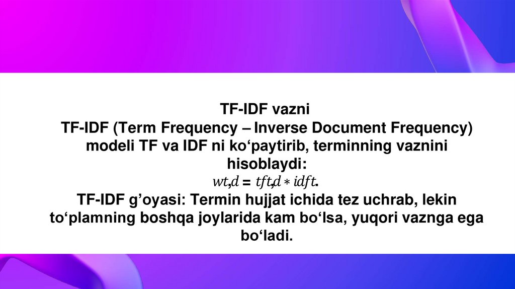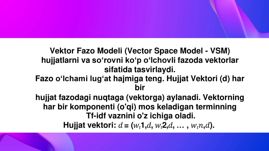 1. Mavzu: Muddatli vazn va vektor makon modeli