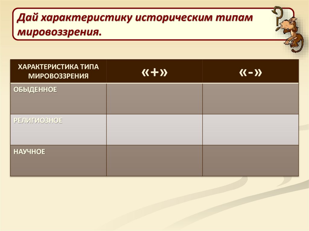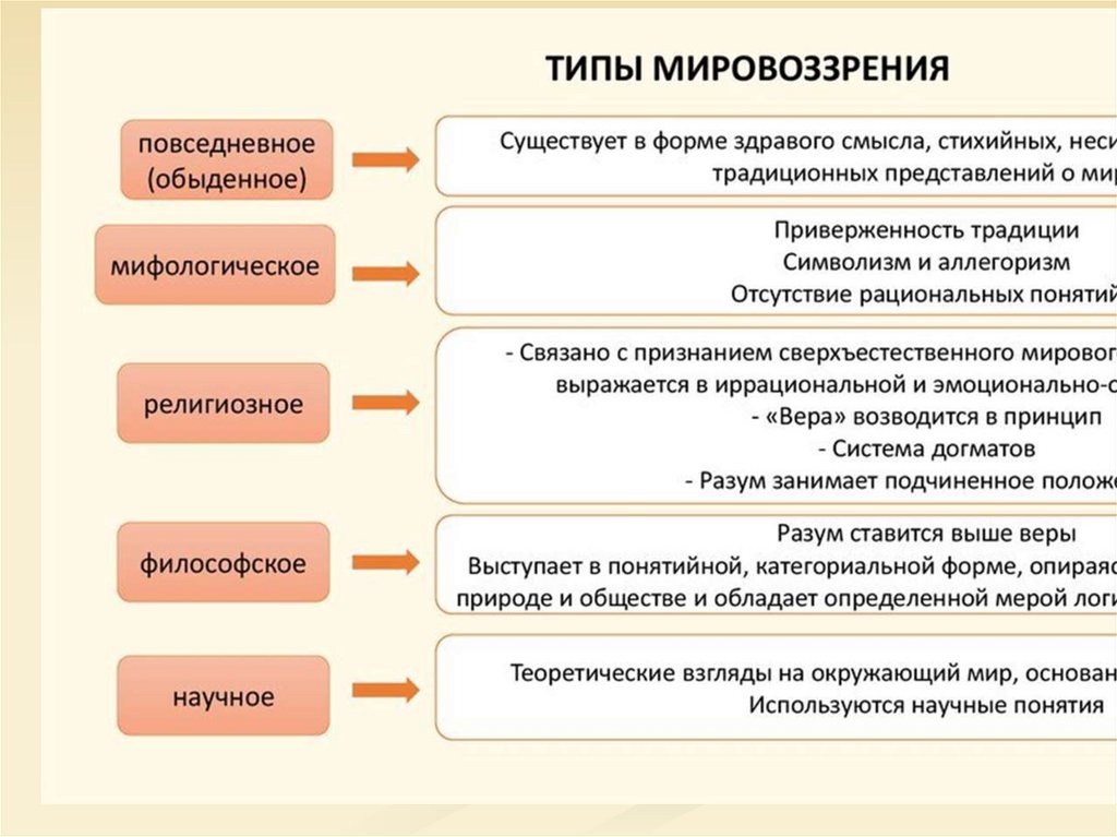 МИРОВОЗЗРЕНИЕИСТОРИЧЕСКИЕ ТИПЫ МИРОВОЗЗРЕНИЯ: