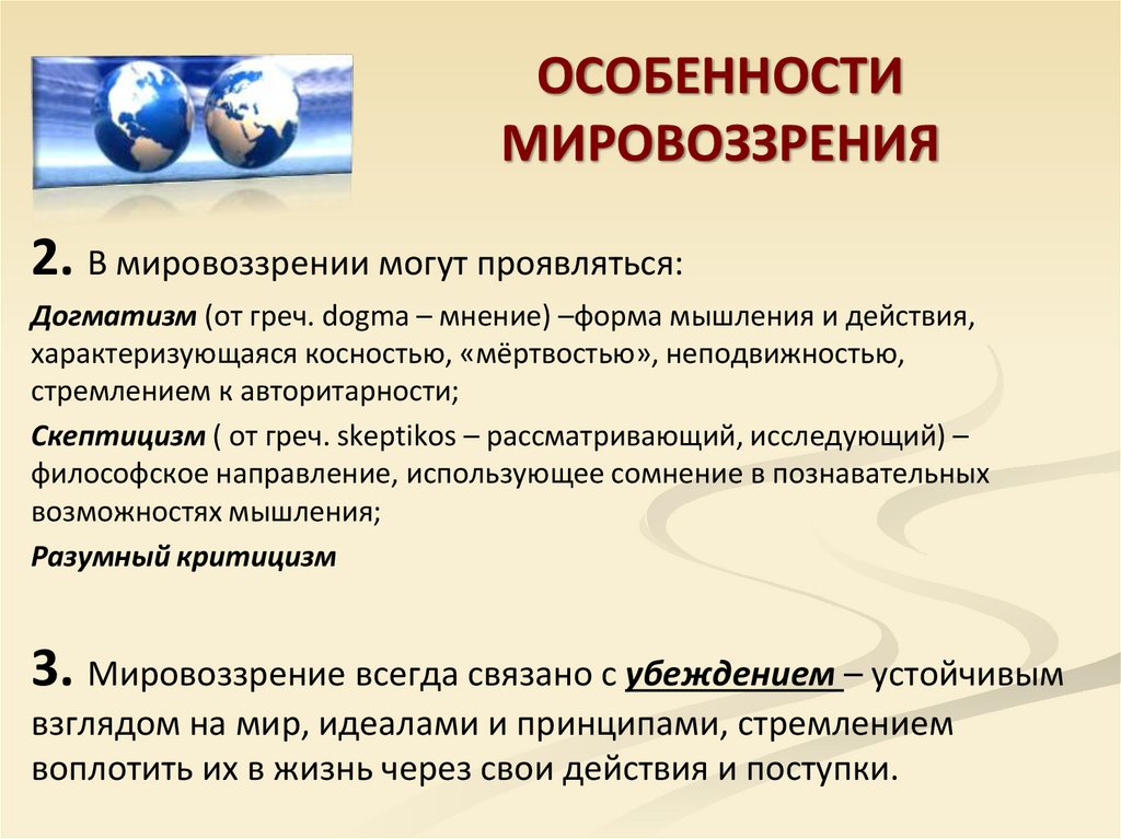 ОСОБЕННОСТИ МИРОВОЗЗРЕНИЯ
