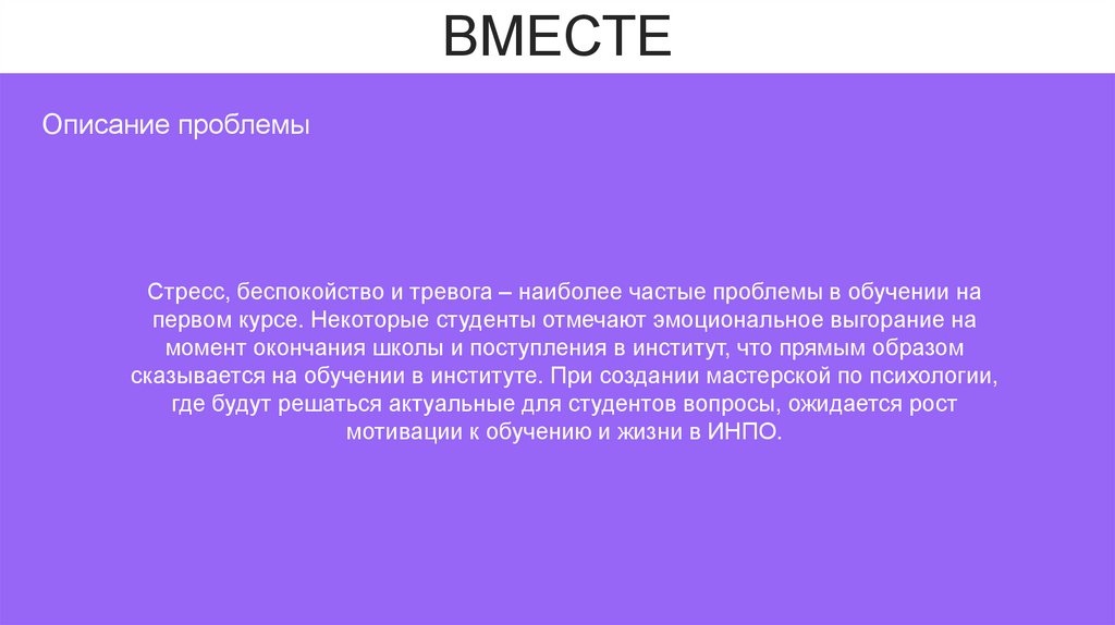 ВМЕСТЕОписание проблемы