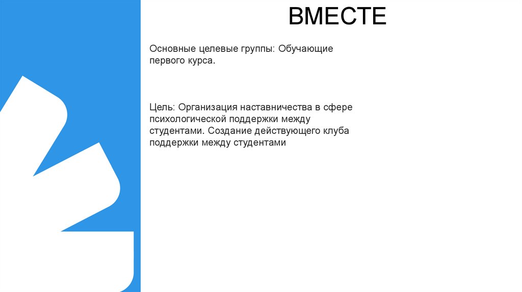 ВМЕСТЕОсновные целевые группы: Обучающие