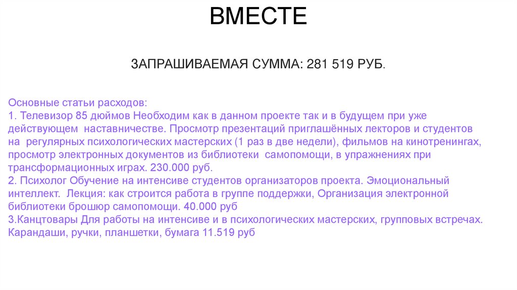 ВМЕСТЕЗАПРАШИВАЕМАЯ СУММА: 281 519 РУБ.