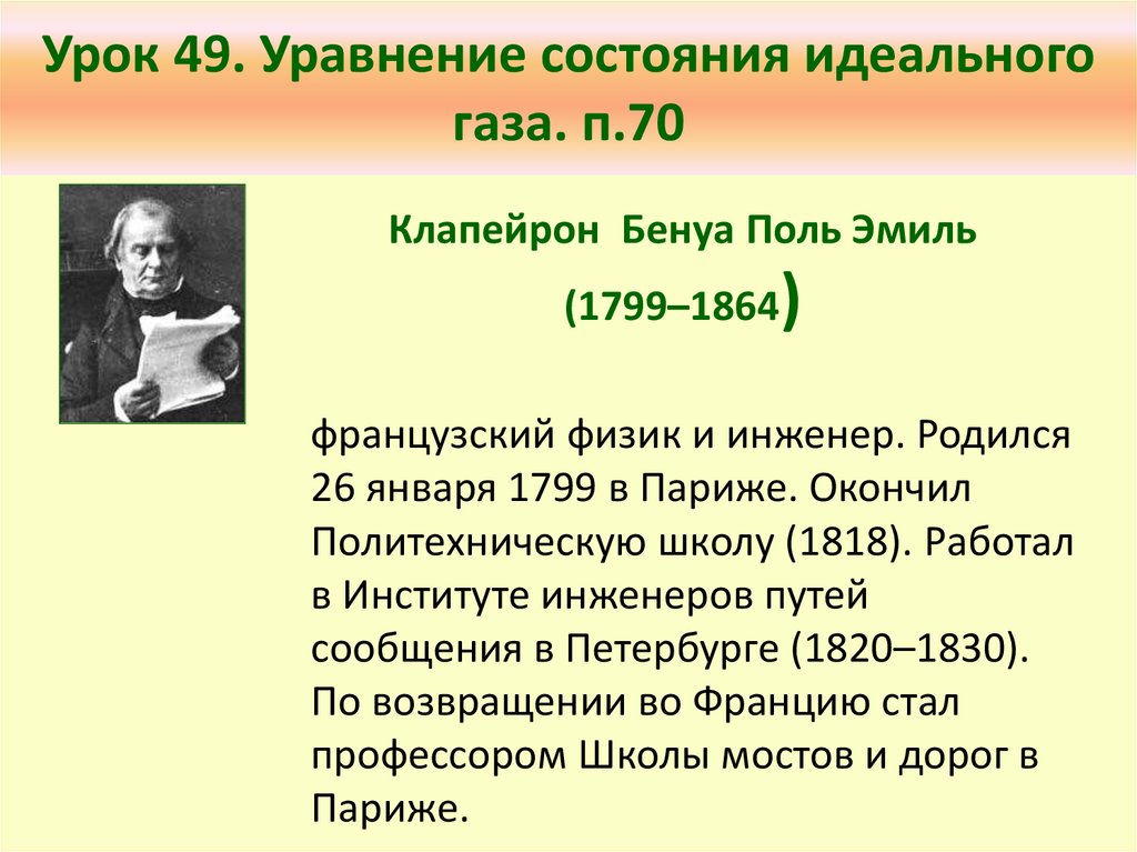 1. Урок 49. Уравнение состояния идеального газа. п.70