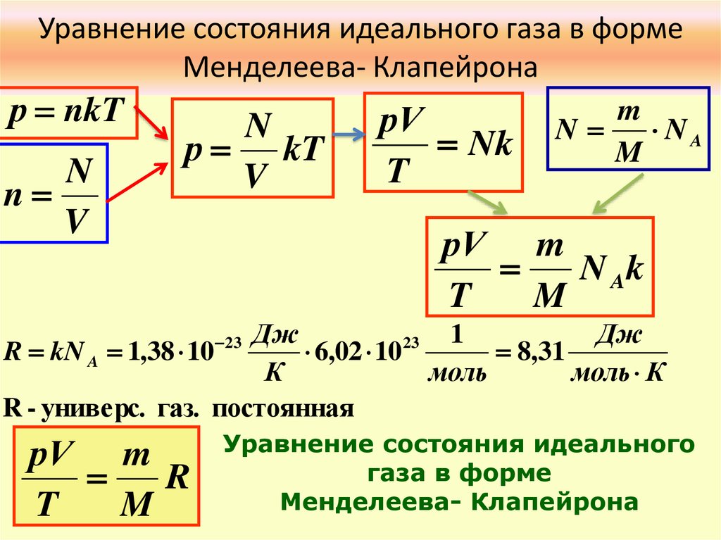 Уравнение состояния идеального газа в формеМенделеева- Клапейрона
