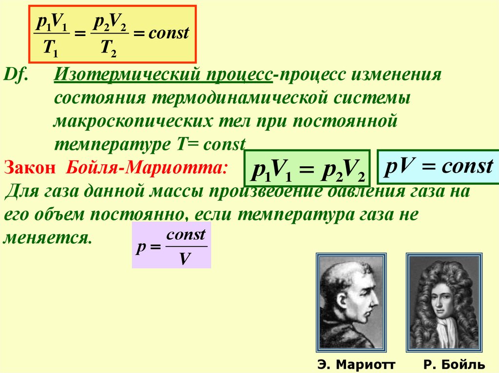 Закон Бойля-Мариотта: р1V1 р2V2 рV соnst