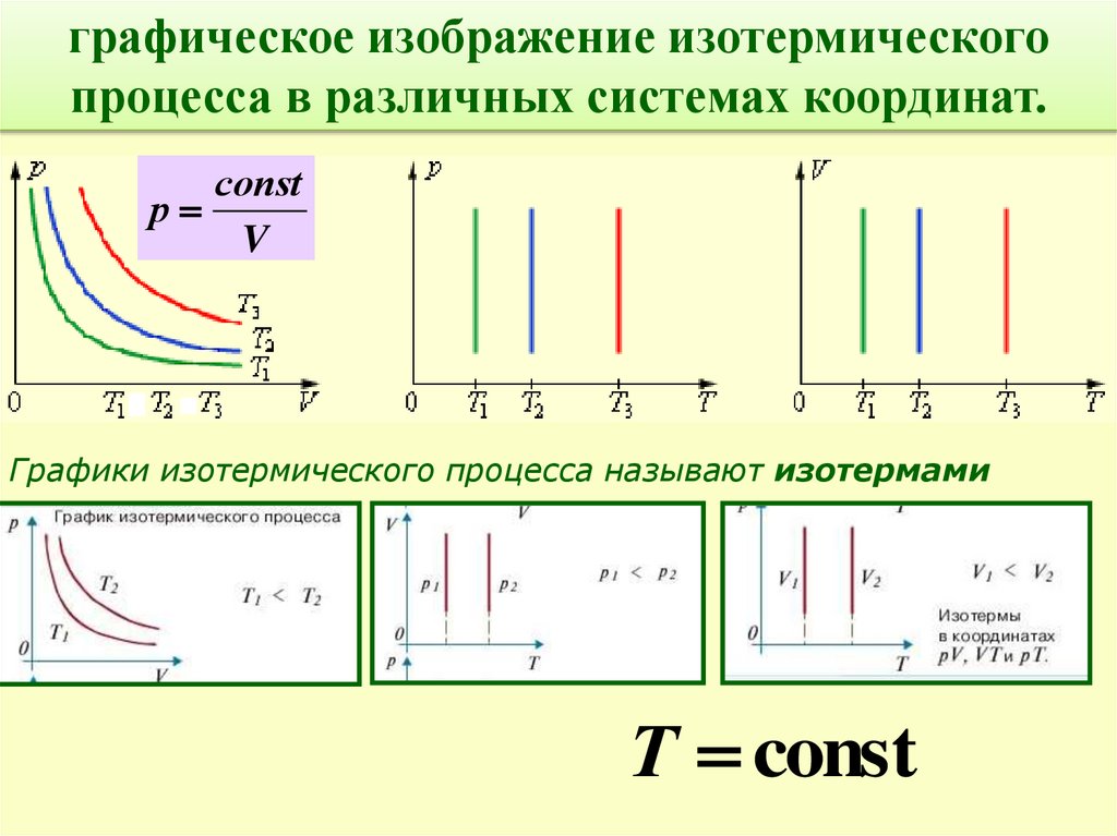 графическое изображение изотермическогопроцесса в различных системах координат.