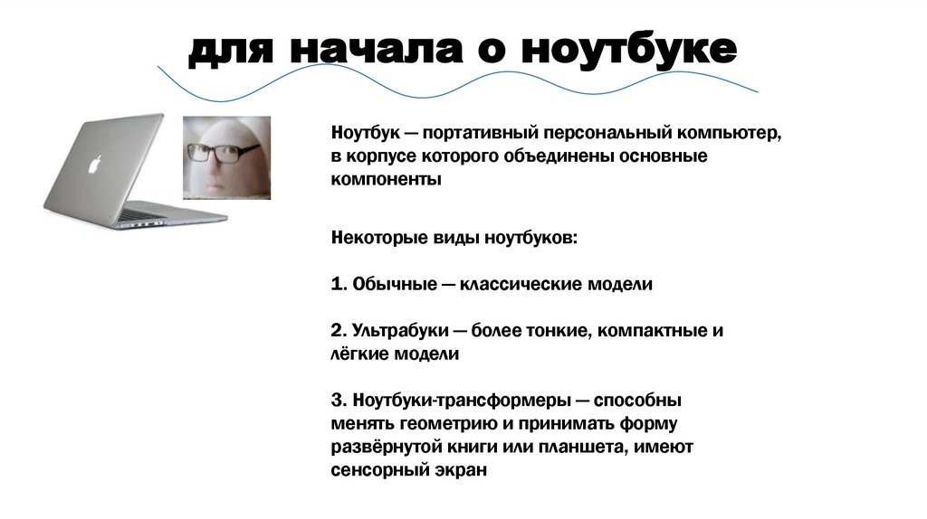для начала о ноутбукеНоутбук — портативный персональный компьютер,
