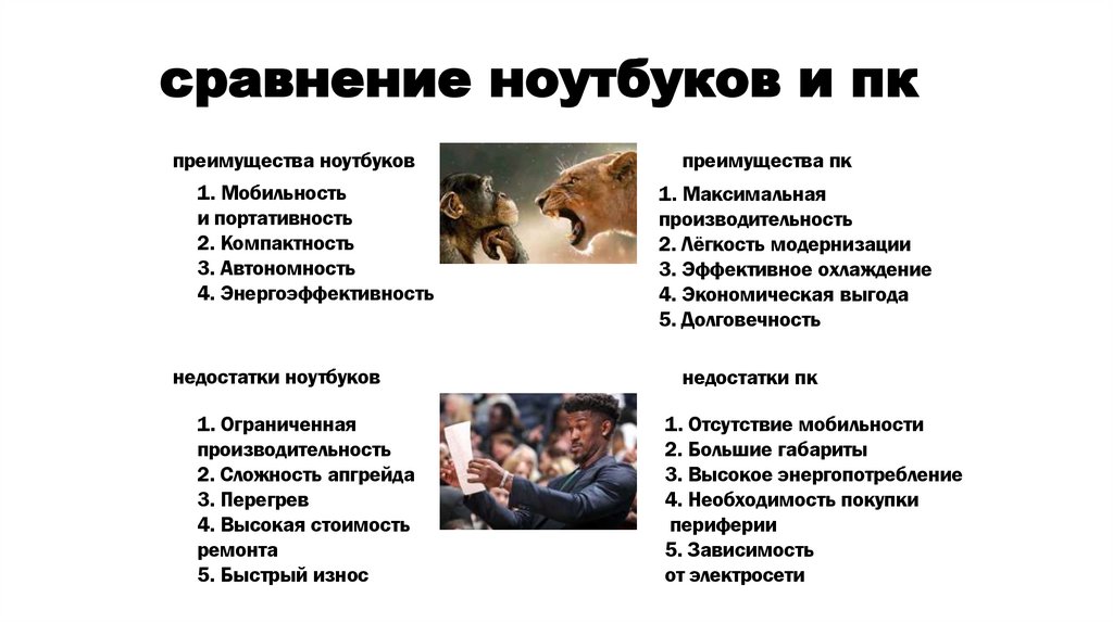 сравнение ноутбуков и пкпреимущества ноутбуков