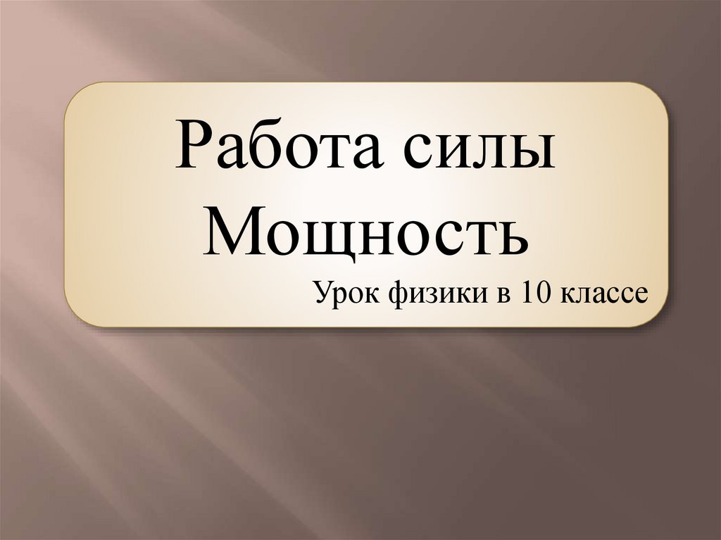 ФМ Работа силы. Мощность._ (10 класс)