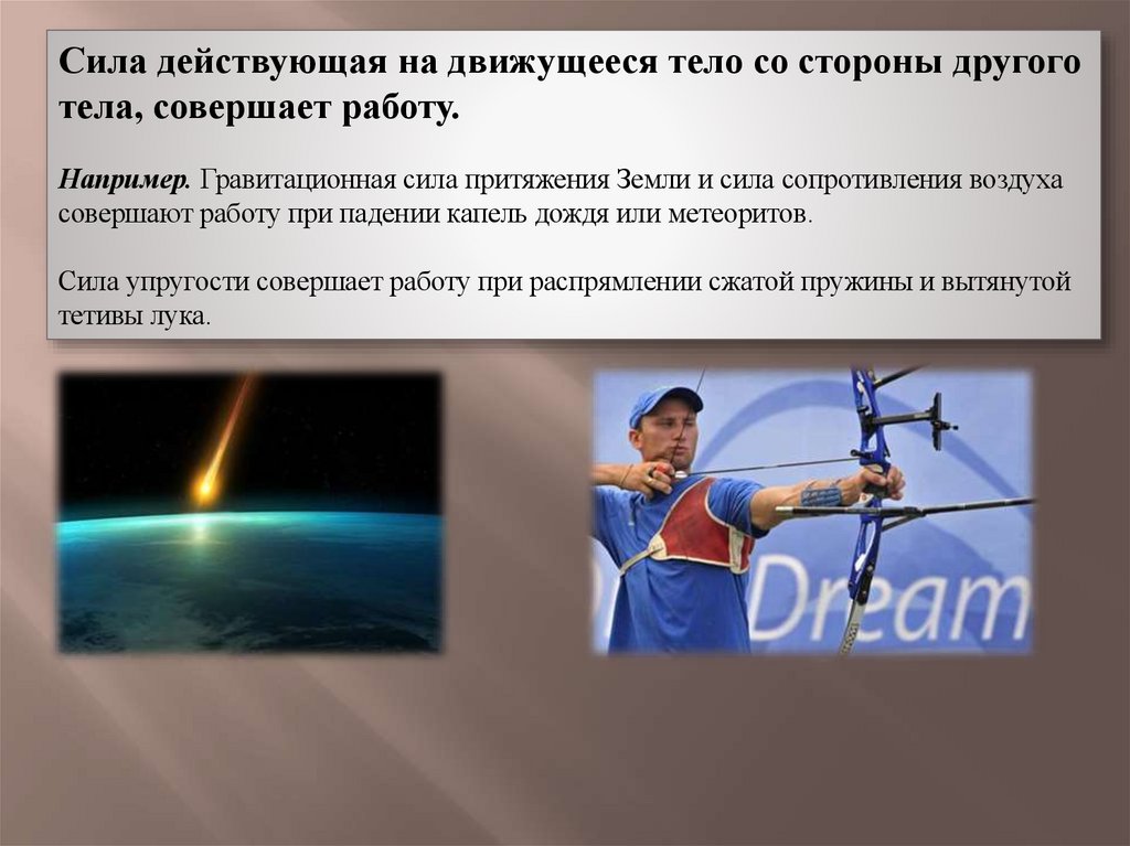 совершают работу при падении капель дождя или метеоритов.
