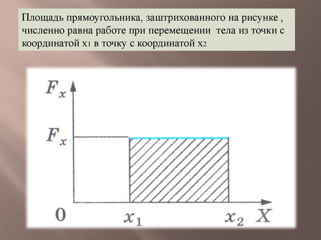 Площадь прямоугольника, заштрихованного на рисунке ,численно равна работе при перемещении тела из точки с